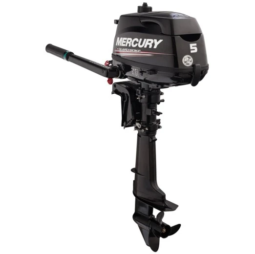 The Mercury 5 HP Outboard motor is perfect for powering small skiffs, jon boats and inflatable boats. The 55 lb. 5 HP outboard is also perfect for auxiliary power for your sailboat. Mercury Outboard motors are known for reliable, efficient power at an affordable price. A larger carburetor and propeller provide for the extra power you crave on the water. The Mercury 5 HP outboard model # 5MH is equipped with the 15 inch short shaft, an integrated gas tank, manual rope start, and forward, neutral and reverse shift. The Mercury Factory warranty begins on date of purchase.