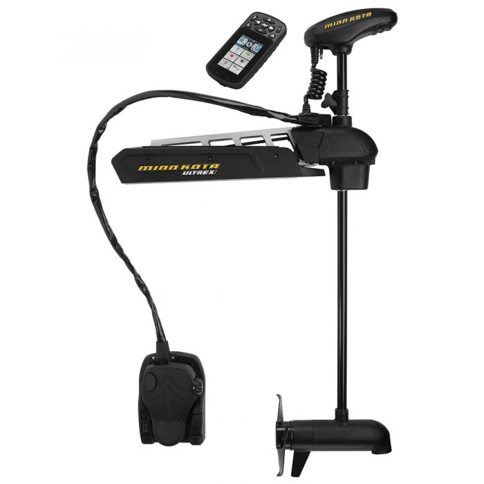 You no longer need to choose between rugged, instant responsiveness and technology-ridden trolling motors with Minn Kota’s Ultrex Bow-Mount Trolling Motor. Reinvented i-Pilot Link connects to your Humminbird® so you can control Ultrex from the Link remote or your Humminbird sonar unit. Plus, it uses GPS to remember fishing spots and control speed, steering, cruise control and Advanced AutoPilot. Link can also follow depth contours, return to productive waypoints and adjust the motor depth with simple controls. Customizable touchscreen menu fits your personal fishing style. iTrack Record, Playback and Backtrack allows you to create, store and retrace productive paths along contour lines. Go-To takes you to saved waypoints of your choosing. Co-Pilot allows wireless control of speed and steering. Cruise control locks in your speed down to 0.1 mph increments. Remote and smartphone apps work via Bluetooth® technology. Using the instant-response cable driven system you’re used to on the Fortrex®, the Ultrex boasts power asisted steering, cutting down on fatigue and saving your energy. Minn Kota refined their Spot Lock technology for tighter tolerance, keeping you on top of the fish. Its single-hinge mono-arm has fewer moving parts than traditional mounts for peerless reliability that meets the demands of tournament anglers. It’s marine-grade anodized-aluminum arm is engineered to tighter tolerances for professional-grade strength, resulting in 75% less torsion deflection and less overall weight. The counter-tension stability system eliminates motor play, reducing steering torque at high speeds in rough water, and provides rock-solid, vibration-free stowing. A nitrogen gas-charged spring halves the strength needed to stow or deploy the arm. Bowguard 360™ lets you easily lift the motor and Bowguard off by removing a single cap screw for secure storage on the road or during winter. Includes power-saving Digital Maximizer™ technology with battery meter, and a nearly indestructible composite shaft. Available with Universal Sonar 2. Two-year warranty. Made in USA.
