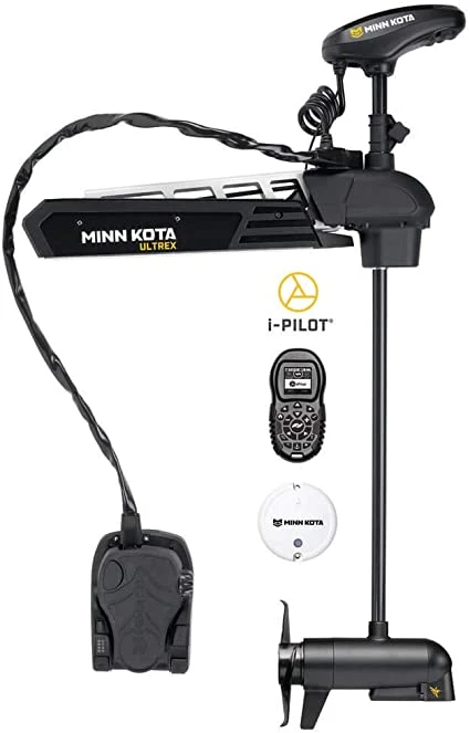 You no longer need to choose between rugged, instant responsiveness and technology-ridden trolling motors with Minn Kota’s Ultrex Bow-Mount Trolling Motor. i-Pilot uses GPS to remember fishing spots and control speed, steering, cruise control and Advanced AutoPilot. iTrack Record, Playback and Backtrack allows you to create, store and retrace productive paths along contour lines. Co-Pilot allows wireless control of speed and steering. Cruise control locks in your speed down to 0.1 mph increments. Remote and smartphone apps work via Bluetooth® technology. Using the instant-response cable-driven system you’re used to on the Fortrex®, the Ultrex boasts power-assisted steering, cutting down on fatigue and saving your energy. Minn Kota refined their Spot-Lock technology for tighter tolerance, keeping you on top of the fish. When you lift your foot off the pedal, steering lock holds the motor’s heading, reguardless of wind or current. The Ultrex’s foot pedal boasts controls for Auto Pilot and Spot-Lock. Its single-hinge mono-arm has fewer moving parts than traditional mounts for peerless reliability that meets the demands of tournament anglers. Its marine-grade anodized-aluminum arm is engineered to tighter tolerances for professional-grade strength, resulting in 75% less torsion deflection and less overall weight. The counter-tension stability system eliminates motor play, reducing steering torque at high speeds in rough water, and provides rock-solid, vibration-free stowing. A nitrogen gas-charged spring halves the strength needed to stow or deploy the arm. Bowguard 360™ lets you easily lift the motor and Bowguard off by removing a single cap screw for secure storage on the road or during winter. Includes power-saving Digital Maximizer™ technology with battery meter, and a nearly indestructible composite shaft. Available with Universal Sonar 2. Two-year warranty. Made in USA.